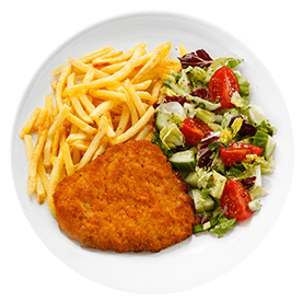Salade, tomates, oignons, olives, vinaigrette. + 1 Viande au choix.
