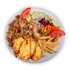 Salade, tomates, oignons, olives, vinaigrette. + 2 Viandes au choix.